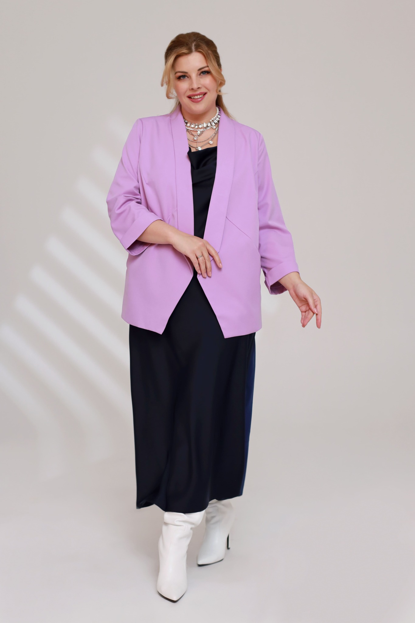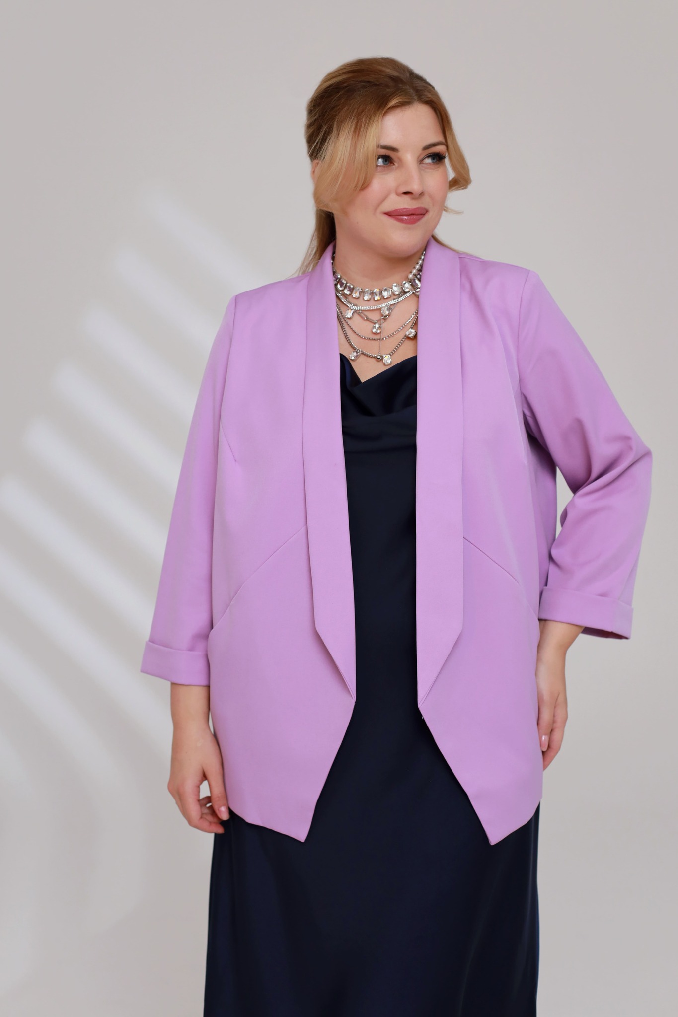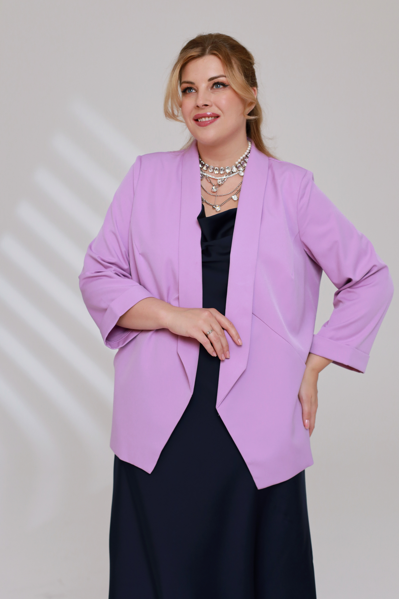 Женственный жакет прямого кроя. выполнен из плотной мягкой ткани. глубокий v-образный вырез оформлен отложным воротником. рукава 7/8 оформлены отворотом. по бокам вшивные карманы. формирующие швы обеспечивают оптимальную посадку по фигуре. небольшие подплечники делают осанку более выправленной. передние полочки дополнены атласной подкладкой, по спинке подкладка отсутствует. ассиметричный нижний край спереди – визуально стройнит. модель полуприлегающего силуэта без застежки - отлично подходит для завершения стильного образа.