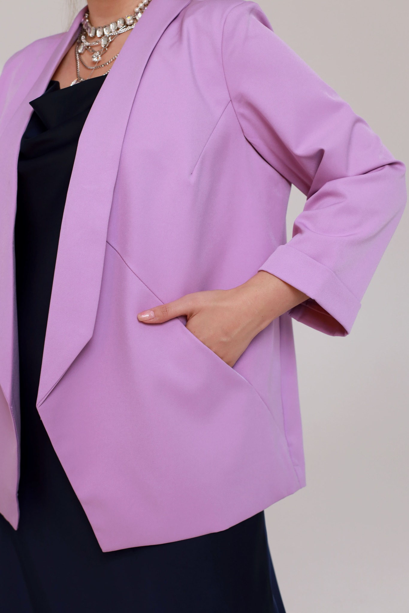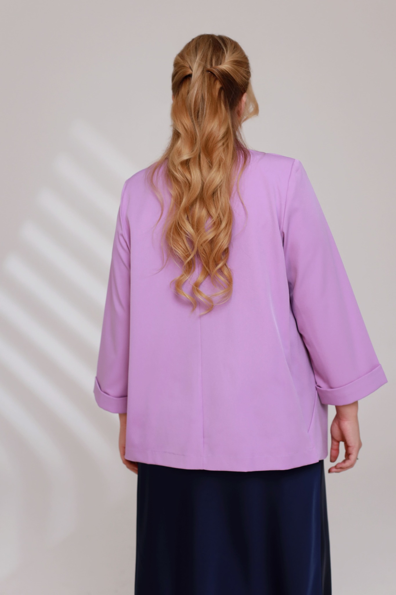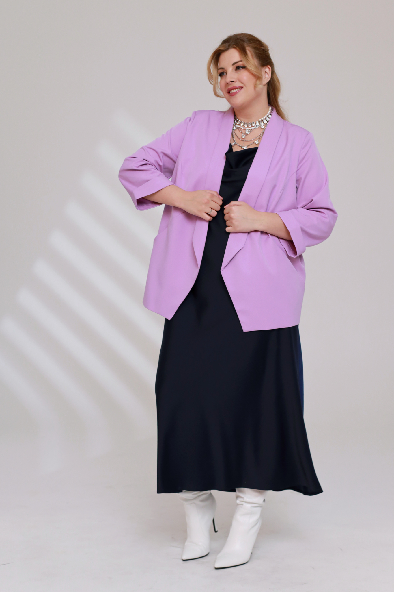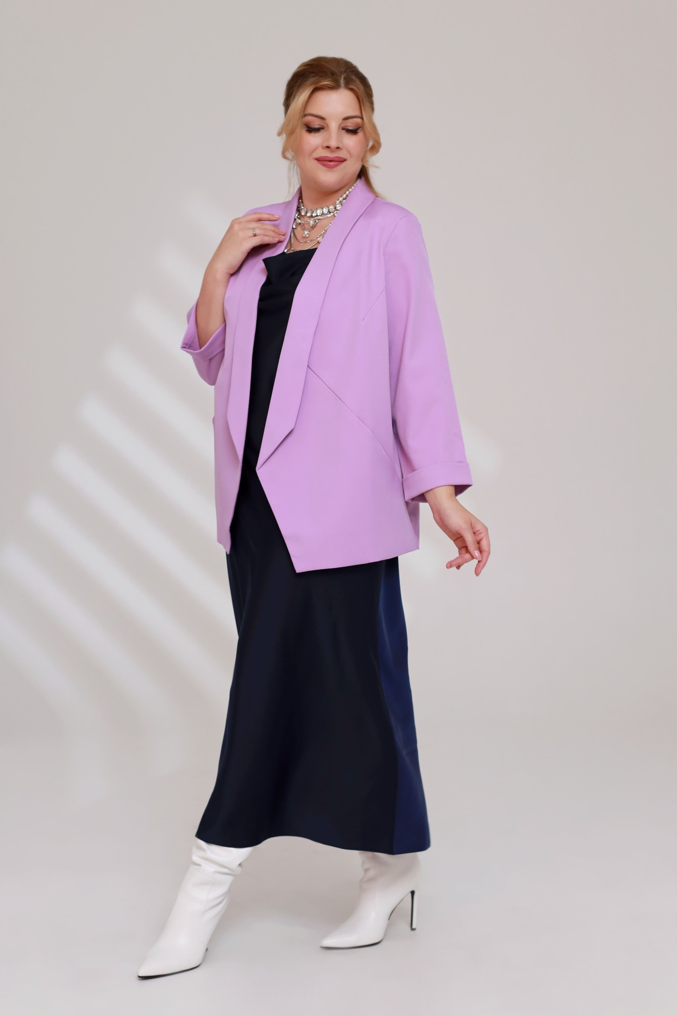 Женственный жакет прямого кроя. выполнен из плотной мягкой ткани. глубокий v-образный вырез оформлен отложным воротником. рукава 7/8 оформлены отворотом. по бокам вшивные карманы. формирующие швы обеспечивают оптимальную посадку по фигуре. небольшие подплечники делают осанку более выправленной. передние полочки дополнены атласной подкладкой, по спинке подкладка отсутствует. ассиметричный нижний край спереди – визуально стройнит. модель полуприлегающего силуэта без застежки - отлично подходит для завершения стильного образа.