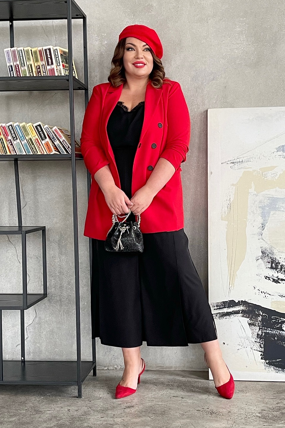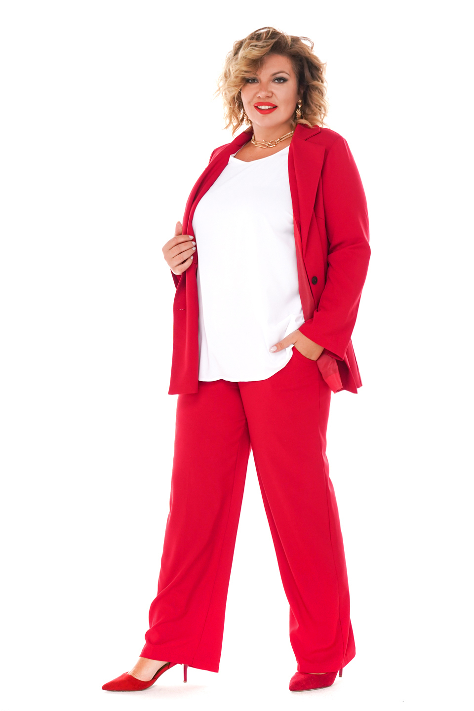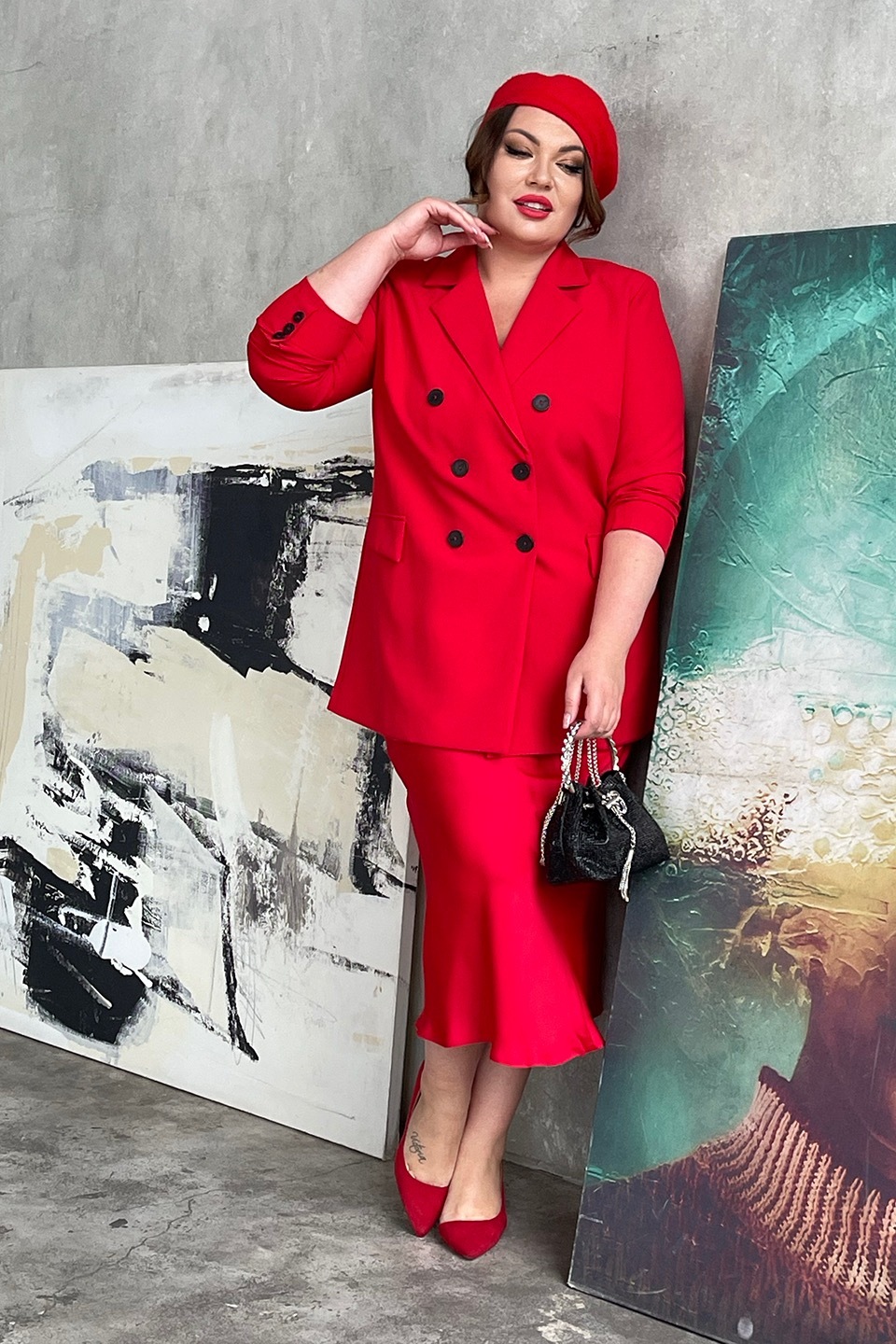 Жакет двубортный красный