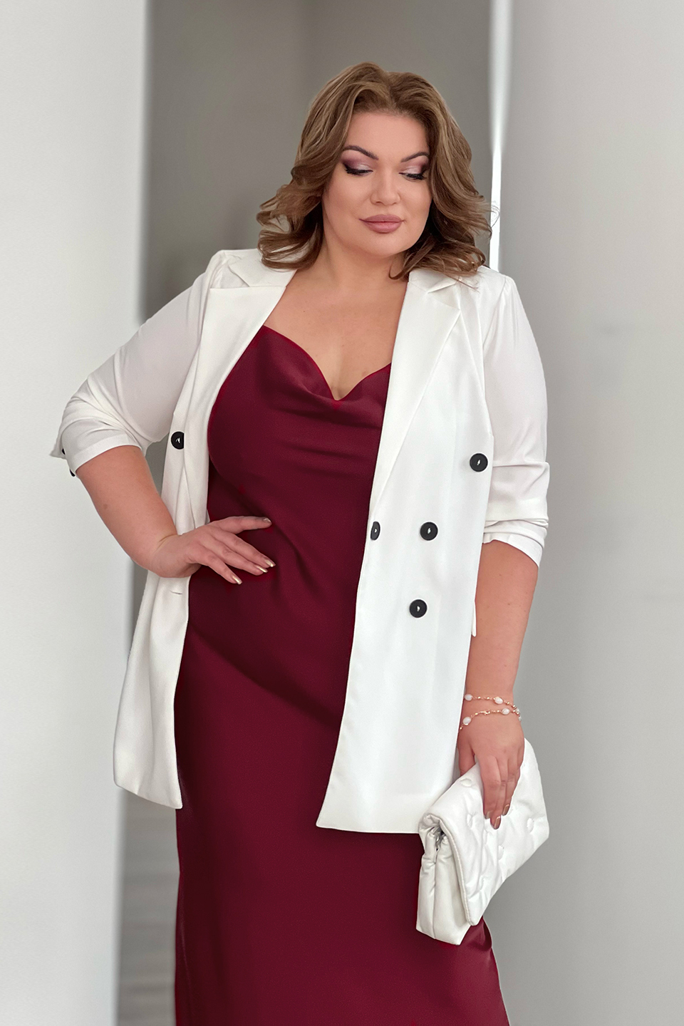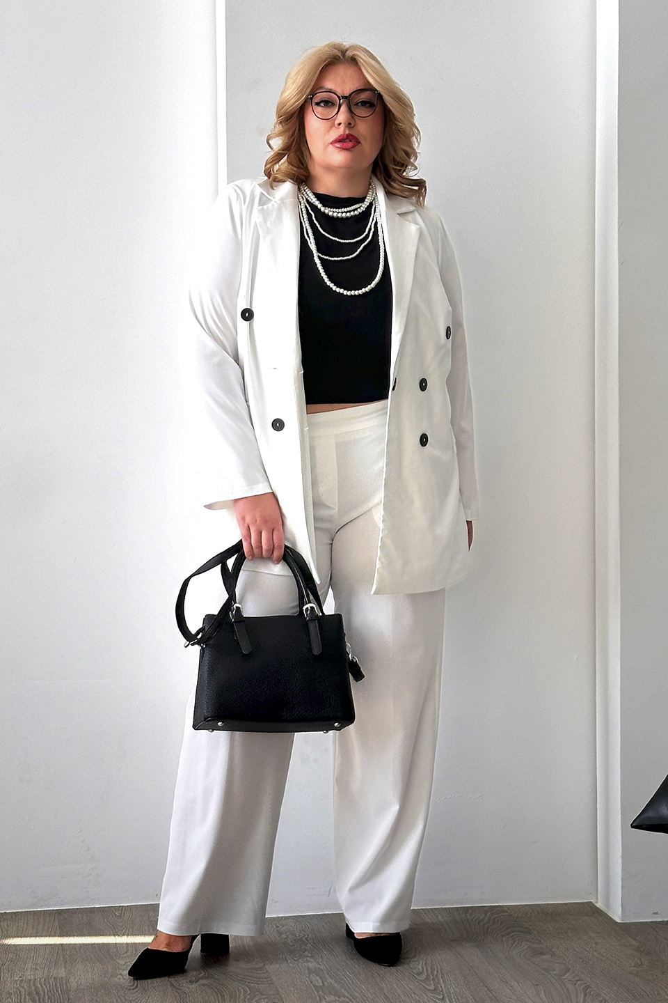 Жакет двубортный белый