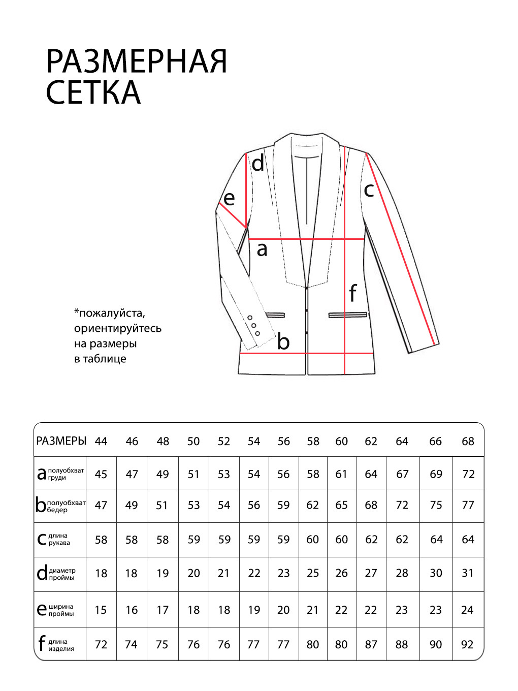 Длина изделия 50 размера по спинке - 74 см. в каждом следующем размере длина увеличивается.