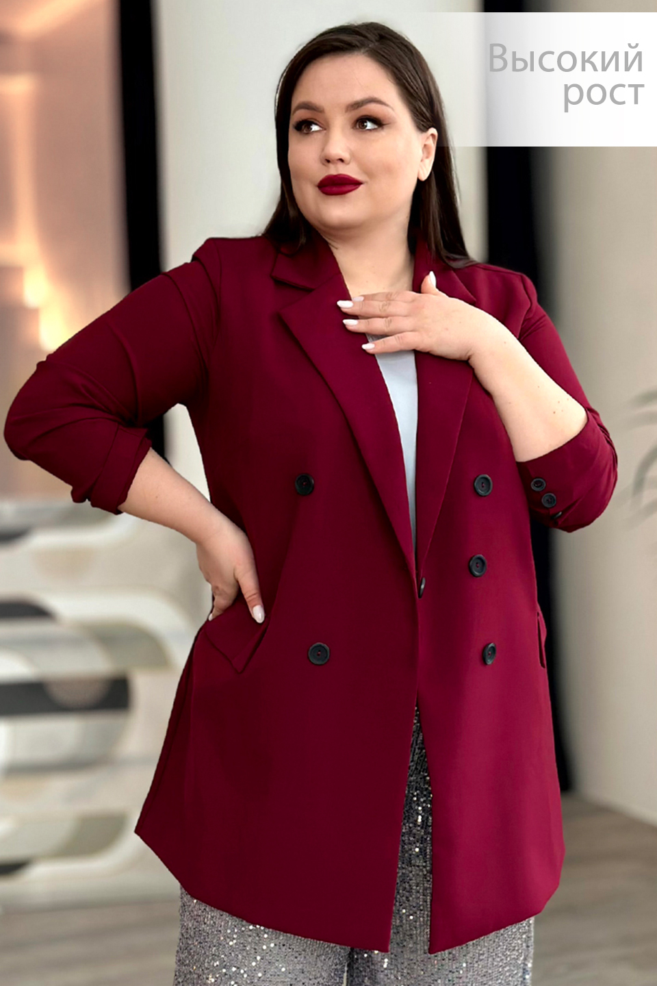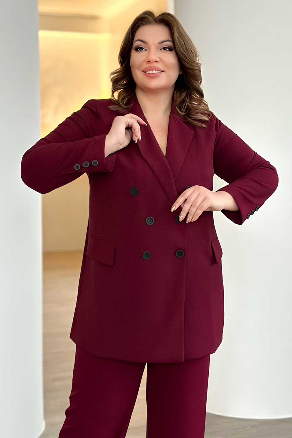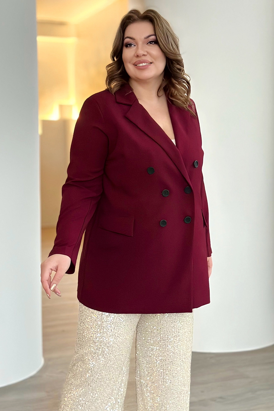 Жакет двубортный бордо