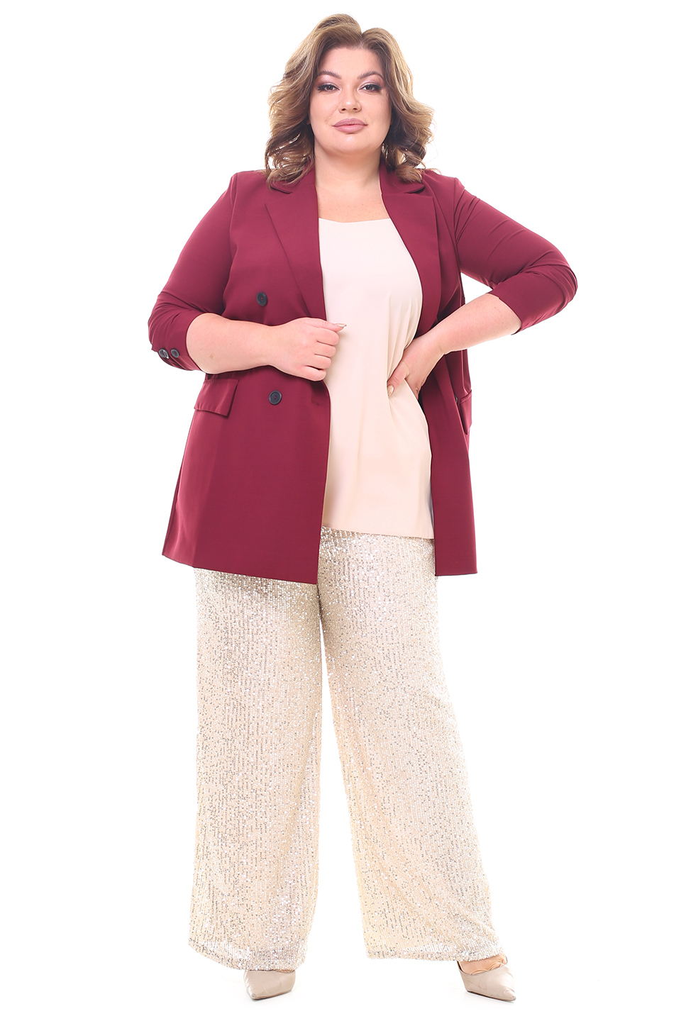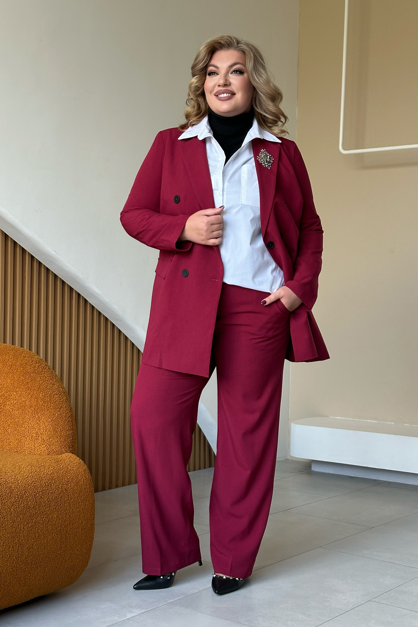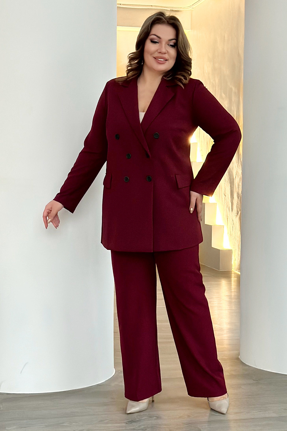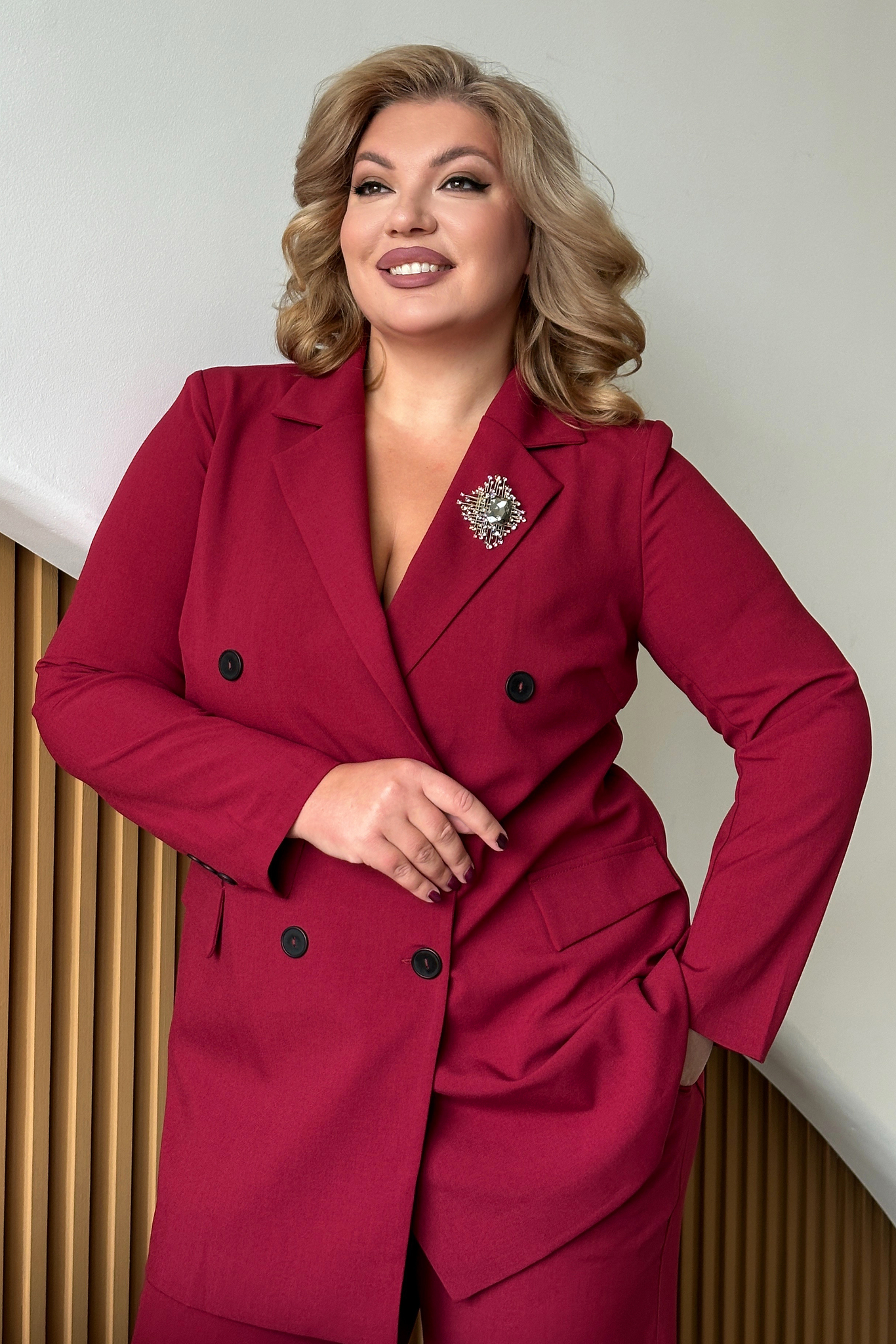 Жакет двубортный бордо