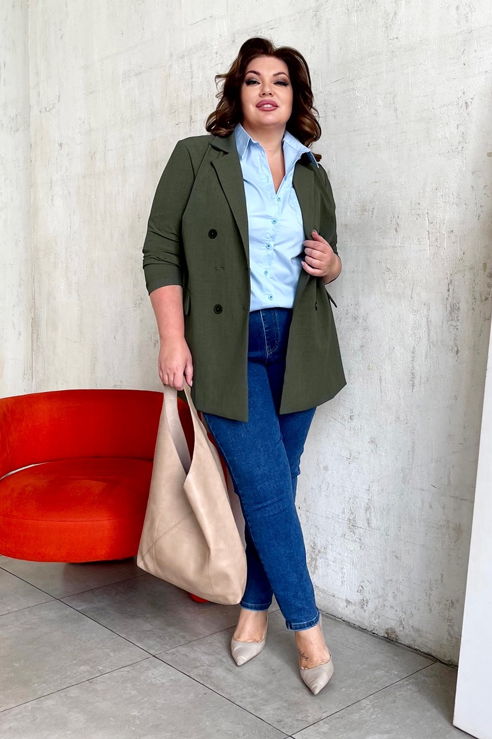 Жакет двубортный хаки
