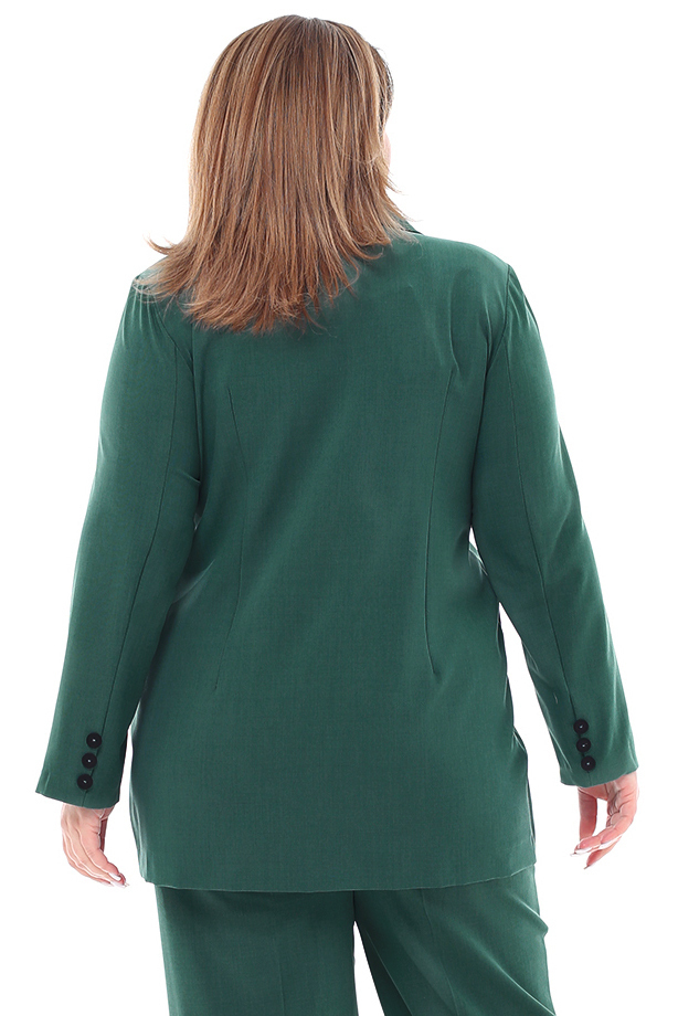 Стильный жакет прямого кроя из мягкого материала. v-образный вырез оформлен классическим отложным воротником с лацканами. передние полочки дополнены атласной подкладкой, по спинке подкладка отсутствует. рукава полной длины украшены декоративными пуговками. аккуратные подплечники зрительно вытягивают силуэт и делают бедра визуально у же. вытачки на груди и по спинке способствуют оптимальной посадке по фигуре. модель на двубортной застёжке, что добавляет модели практичности и оригинальности. по бокам декоративные клапаны. этот модный жакет станет идеальным дополнением для повседневного стильного образа. длина изделия 50 размера по спинке - 67 см. в каждом следующем размере длина увеличивается.