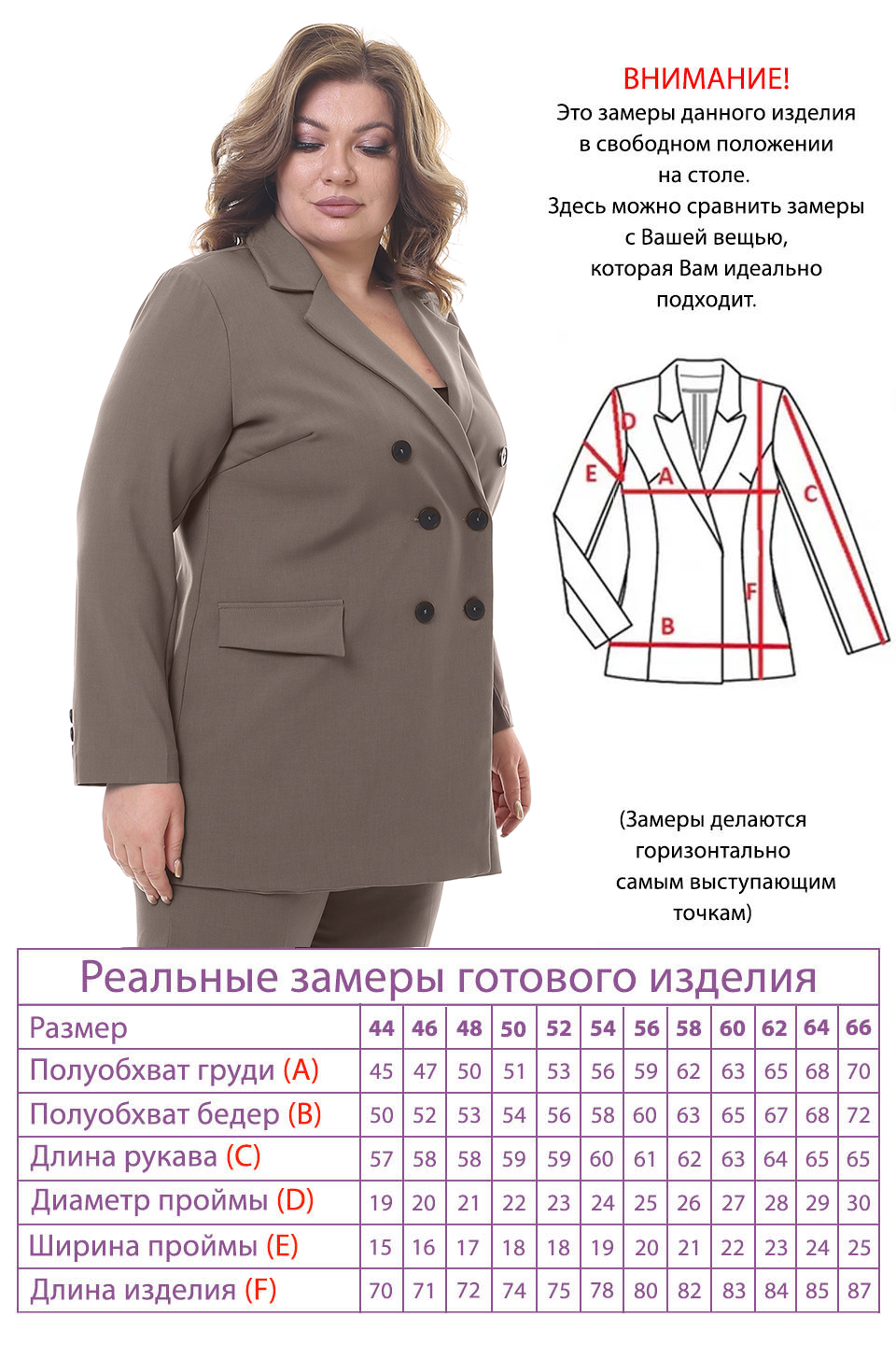 Просим обратить внимание, что в таблице приведены замеры фигуры, а не изделия.