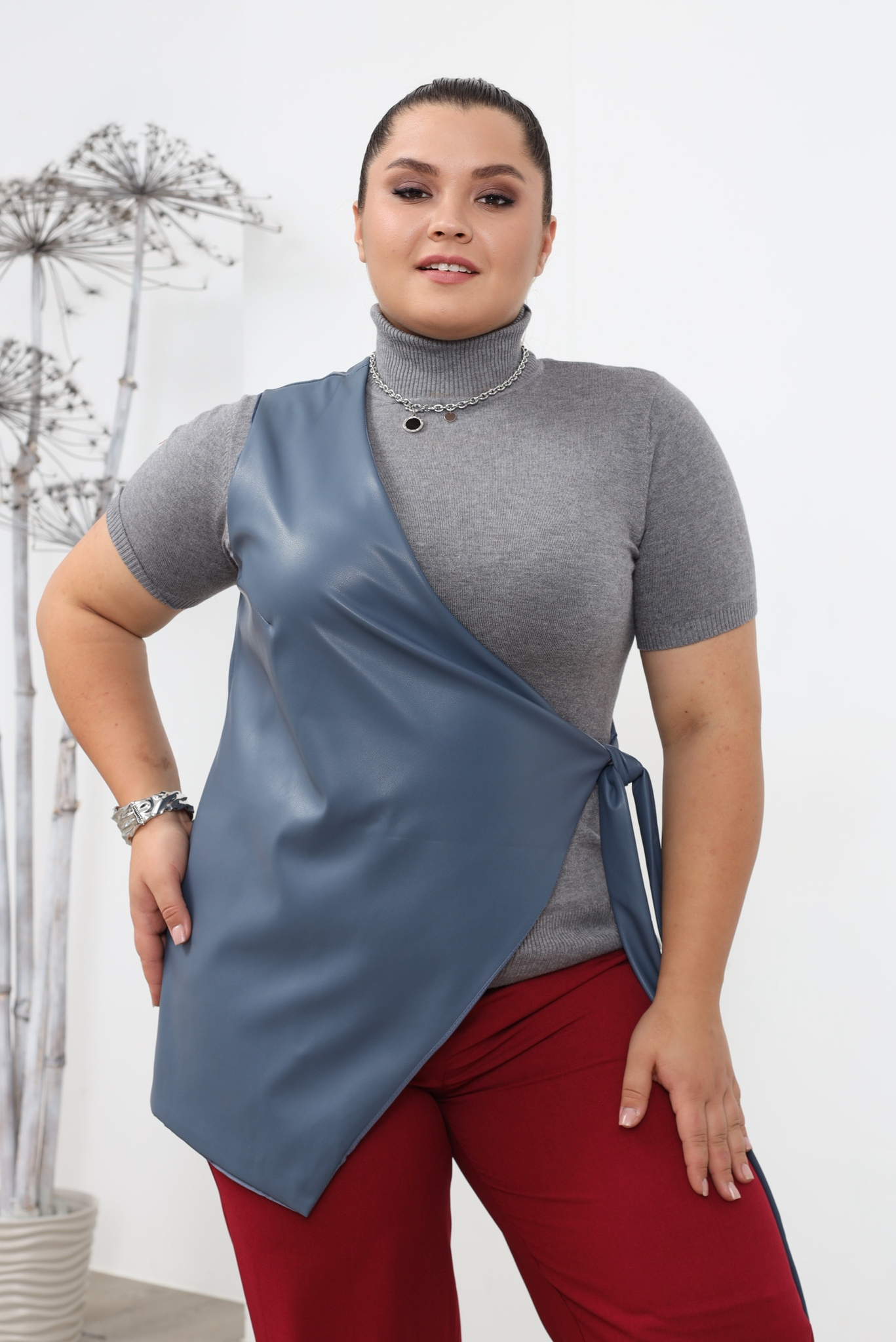 Стильный жилет на одно плечо из мягкой экокожи на вискозной подкладке, хорошо держит форму. вытачка на груди обеспечивает оптимальную посадку по фигуре. асимметричный низ визуально стройнит и зрительно вытягивает силуэт. жилет завязывается сбоку на завязки. отлично сочетается с легкими брюками и рубашками в качестве элегантного офисного костюма. прием многослойности помогает интересно и стильно обыграть базовые вещи.