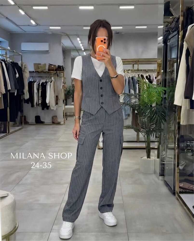 Женский костюм двойка ткань: плотный х/б (жилетка с подкладкой).