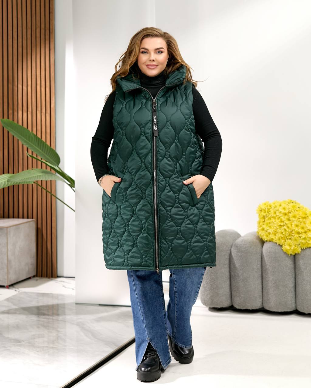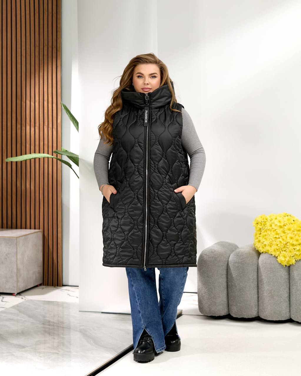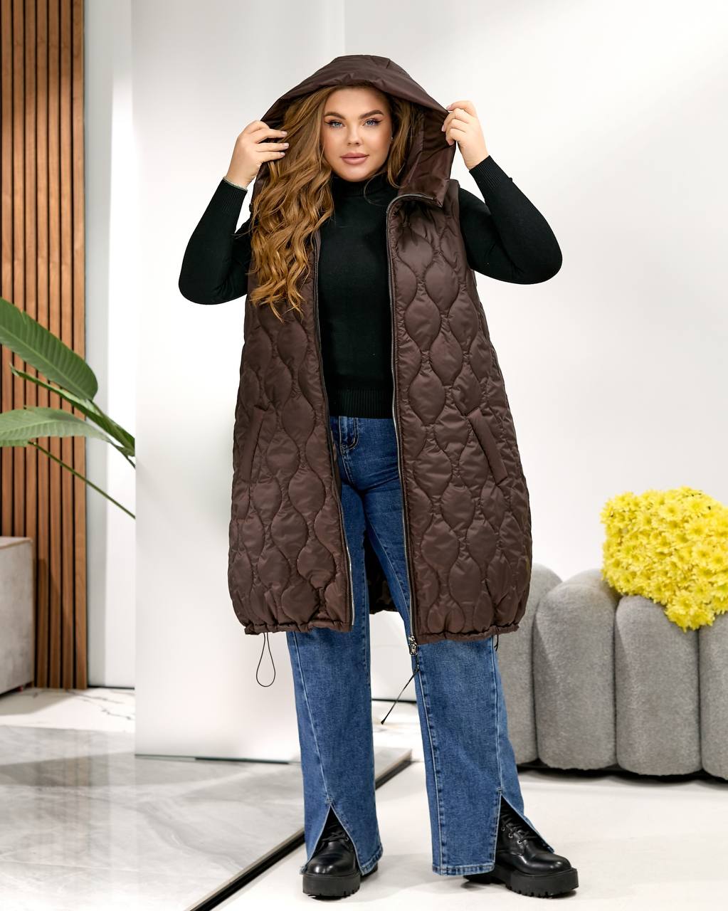 Низ жилета можно стянуть.